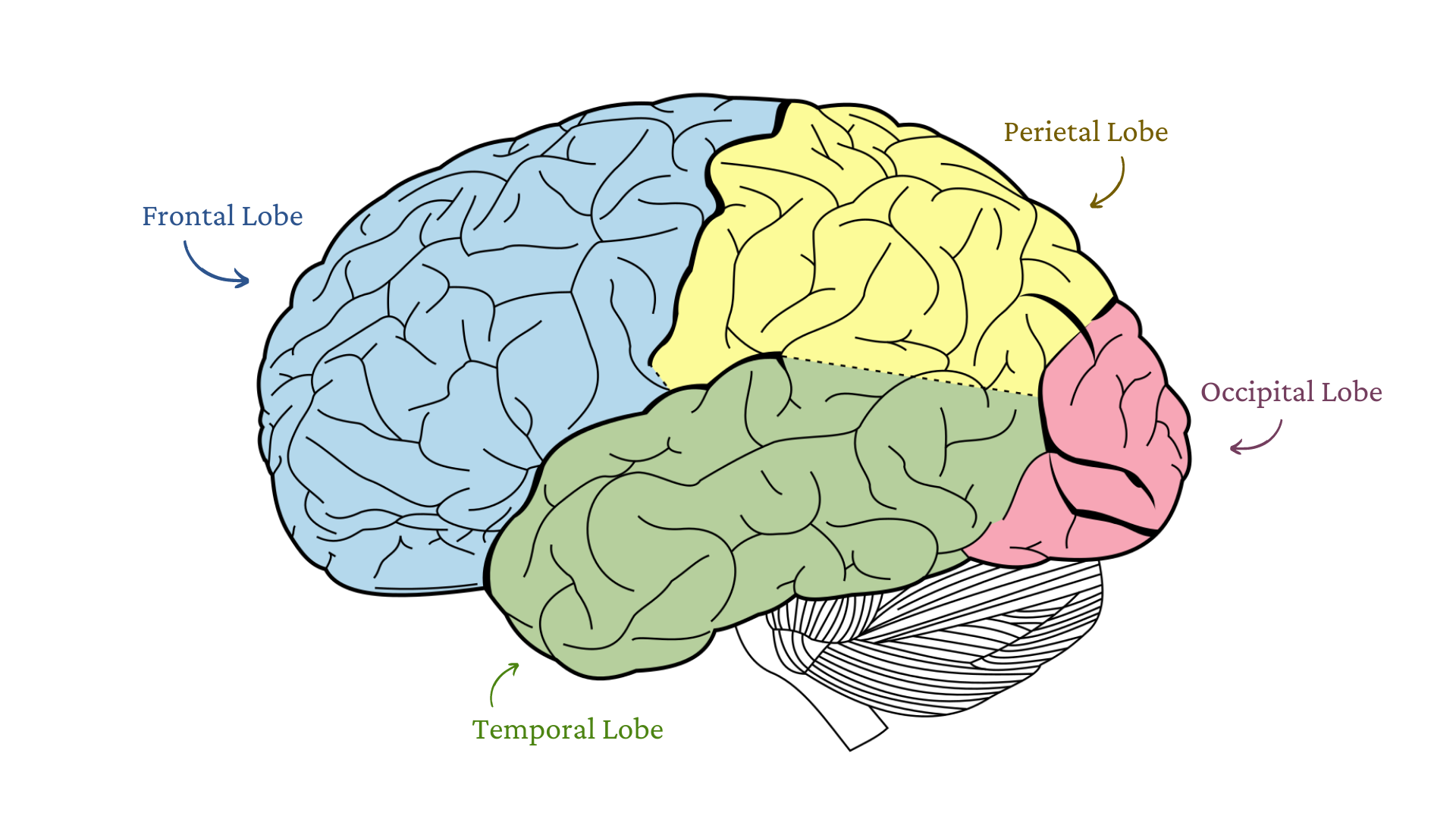 Ventral and dorsal pathways support comprehension and production. The Auditory Cortex (A1) was first correctly proposed by Broca (1860-1865); here, sound into the Left Hemisphere is responsible for Language production. What happens exactly? Information comes into both of the Auditory Cortices, one per hemisphere, and is processed in both places. In the Left Hemisphere, it ends up being processed to the point of allowing semantic understanding; here phonemes, syllables, eventually sentences, and finally the processed sounds are then sent to the Temporal Parietal Junction (TPJ, where the Temporal Lobe meets the Parietal Lobe, which is very close to the Occipital Lobe). We believe that at the TPJ, when an auditory sound is received, a cognitive ‘look-up table/dictionary’ appears that is the lexicon of the Brain for spoken Language and reading. So, information from sight or by feel comes from the Primary Visual Cortex and is sent to the TPJ, where the information is read in (damage to this pathway is Wernicke’s Aphasia) (Musiek & Baran, 2018; Schwartze & Kotz, 2020).