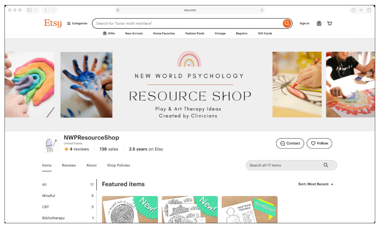New World Psychology has created multiple activities, worksheets, resources, and more! Many of these supports are used in treatment but have been made available for the public through our Etsy shop. If you are a professional and would like some additional resources to beef up your tool box, check out our Etsy shop for ideas created by other professionals in the field!
